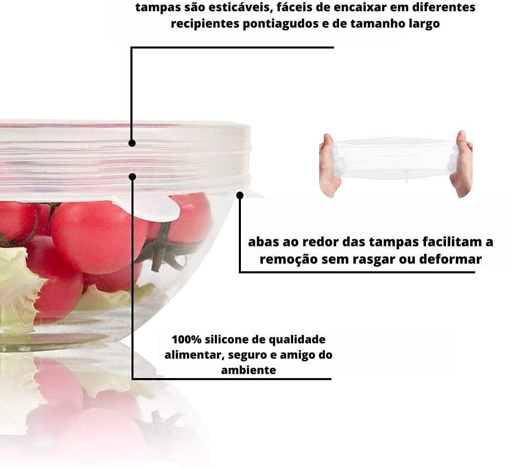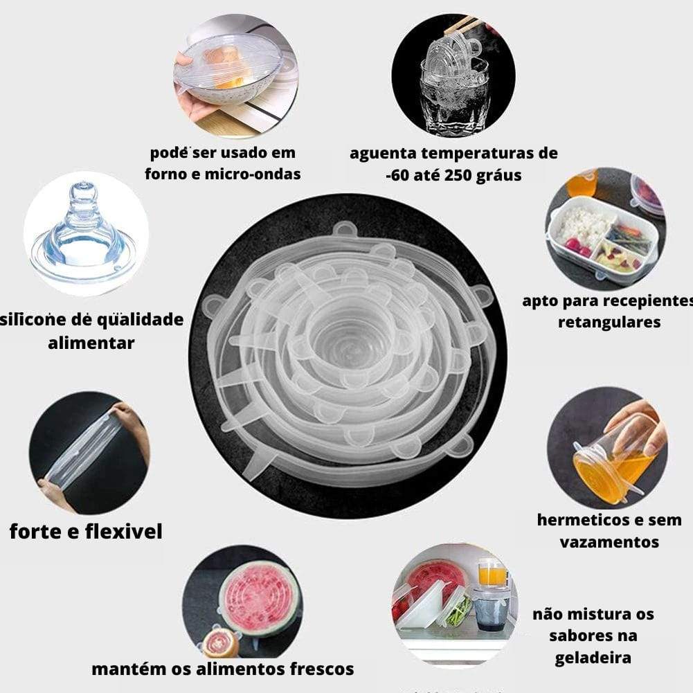 Tampas de silicone herméticas kit 6 tamanhos